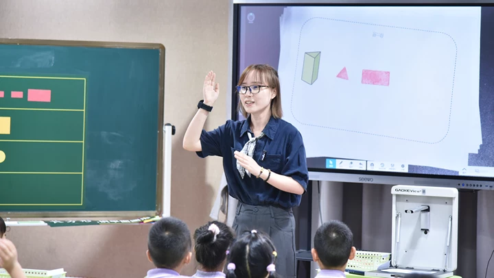 课堂展示:图形世界的奇妙探索 马陆小学陈晓琳老师执教《认识平面图形》一课。她以真实有趣的“侦探破案”情境导入,激发学生探究兴趣,引导学生通过“说一说”“印一印”“拼一拼”等活动,亲历从立体图形中抽象出平面图形的完整过程。课堂中,学生不仅在合作中锻炼表达能力,更在动手中建构起长方形、正方形、三角形和圆的图形表象,深刻理解“面源于体”的空间关系,充分培养学生的空间观念。