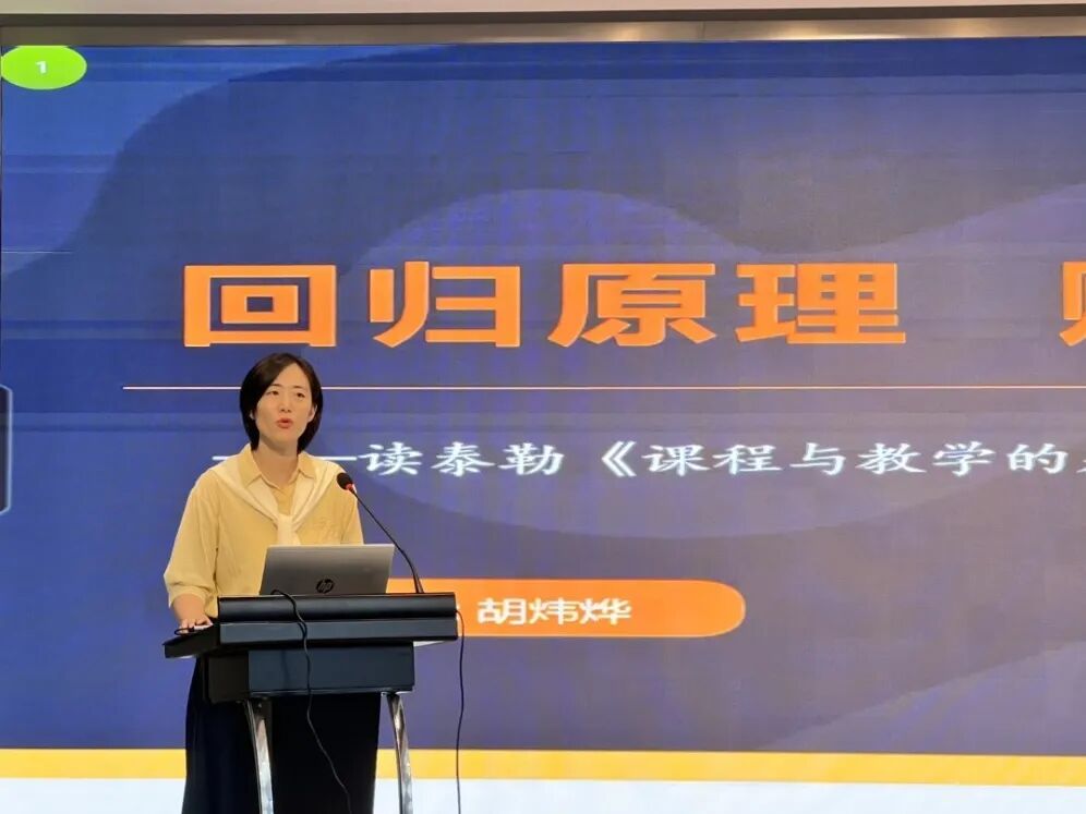 教研员胡炜烨老师,将泰勒原理与“双新”教学痛点深度对接,从目标、经验、评估三大维度,铺展了原理落地的生动图景。她提出,聚焦目标时,通过“课标解读—单元建构—课堂转化”的三级解码,能让抽象的核心素养变得“看得见、可达成”;重构经验时,以多情境设计激活学习者与环境的互动,让学习从“被动接收”走向“真发生、深推进”;重视评估时,依托全流程追踪捕捉学生行为变化,让反馈从“模糊判断”转向“可精准、能优化”,为一线教师提供了可直接落地的操作指南。