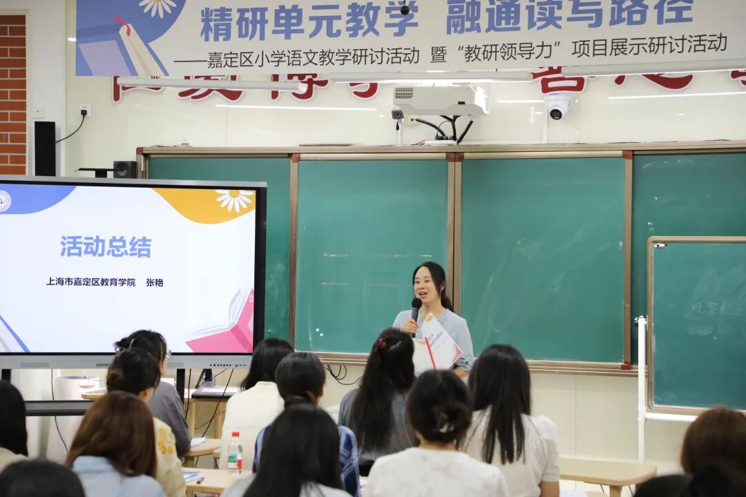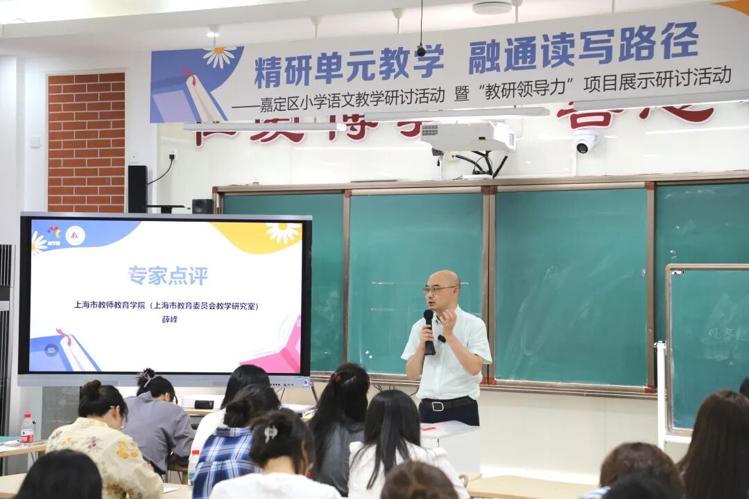 2025年10月16日下午,嘉定区小学语文教学研讨活动暨“教研领导力”项目展示研讨活动在嘉定区新城实验小学举行。本次活动以“精研单元教学 融通读写路径”为主题,特邀上海市教师教育学院小学语文教研员、特级教师薛峰老师莅临指导。嘉定区教育学院小学教研室主任周雅芳,小学语文教研员张艳、胡炜烨,嘉定区新城实验小学校长顾剑,周雅芳、张艳小学语文名师工作室及课程培训班学员共同参与。
