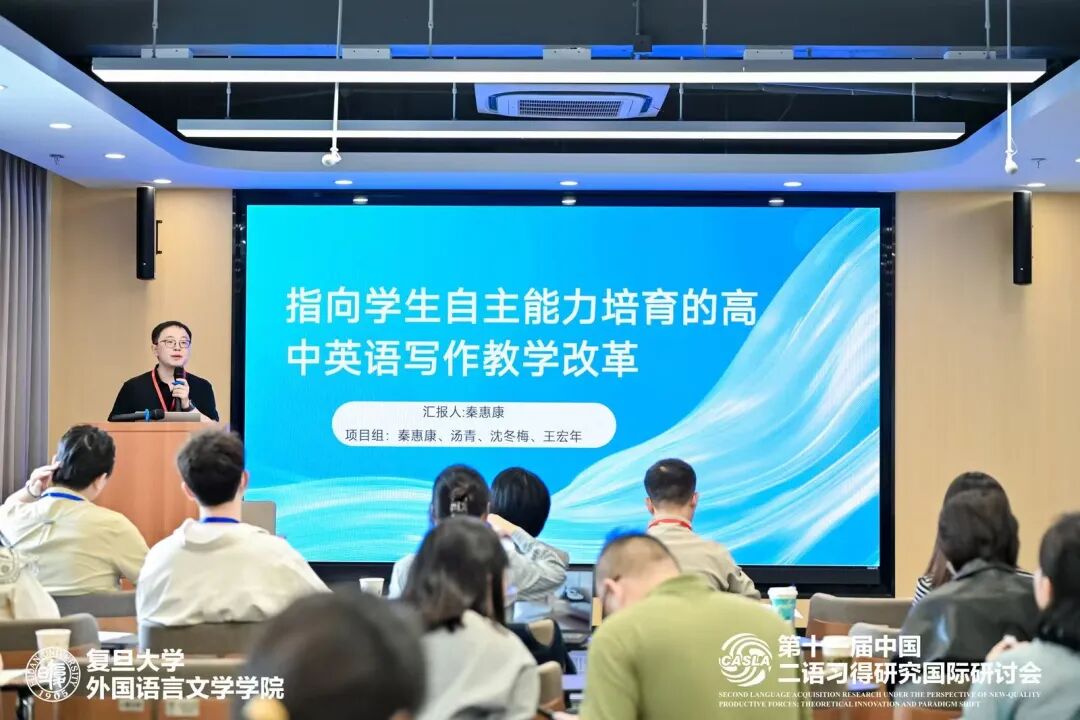 10月17-19日,“新质生产力视角下二语习得研究:理论创新与范式转移”—第十一届中国第二语言习得研究国际研讨会在复旦大学举办,本次会议特别设置“走向持续自主的高中英语写作教学改革实践”—嘉定区教育学院专场,来自市双名工程秦惠康攻关计划和名师工作室成员分享了教学中的实践和研究,并特邀华东师范大学外语学院朱彦教授、苏州大学教授刘宏刚进行点评与互动。