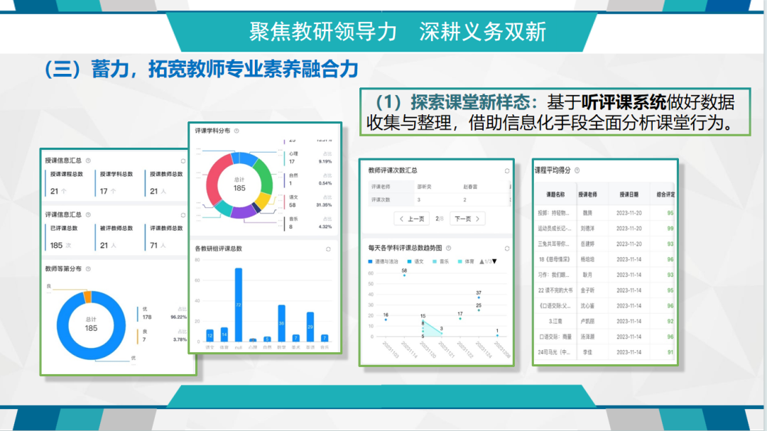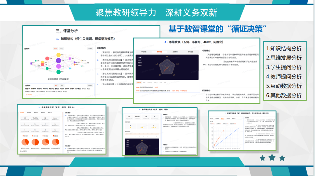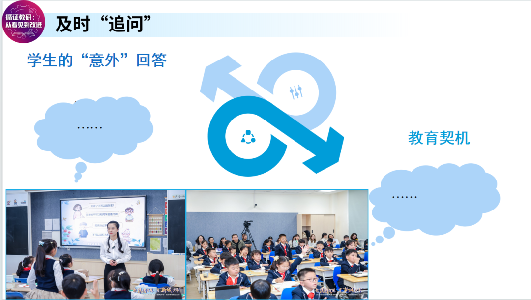 专家把脉 锚定循证教研的深化方向 毛志峰高度评价课题组立足小学道德与法治学科真实困境,以“问题精准画像—数据深度循证—策略有效迭代”为主线,构建了具有强操作性的校本教研新样态。她特别肯定研究直面教师反思浅表化等结构性挑战,通过智能平台分析报告揭示“高活动量≠高思维量”的深层理解,并创新提炼出六类追问、五何提问分析等可迁移工具,实现了从经验判断向证据驱动的实质性跨越。她建议后续进一步强化评价指标的学科特质,推动反思向育人价值层面深化。 花洁高度评价德富路小学在教研领导力项目中的整体谋划与实践落地能力。她指出,学校以鲜明的问题意识和清晰的行动逻辑,将“工具赋能教研品质提升”的理念转化为可操作、可观察、可复制的校本实践,尤其在“精准提问,思维破茧”现场教研中,展现出扎实的团队协作、专业的数据解读能力和对教学本质的深度追问,体现了高品质校本研修的样态。她认为,这种由学校主导、教师深度卷入、技术有机嵌入的教研新生态,正是区域教研领导力落地的关键支点。在此基础上,她对课题组提出深化建议:可进一步融合TPACK框架优化教师分类,探索大模型与SOLO分类理论在高阶思维诊断中的应用,持续提升循证教研的专业高度与学科适切性。