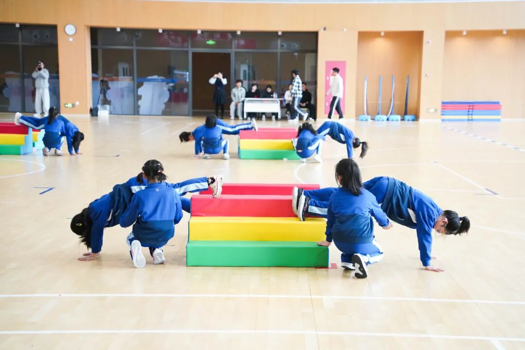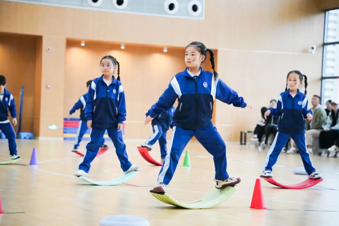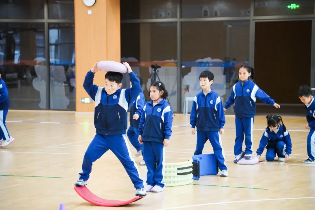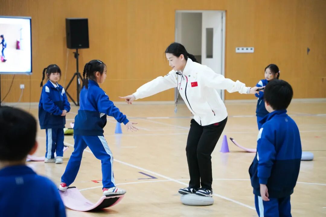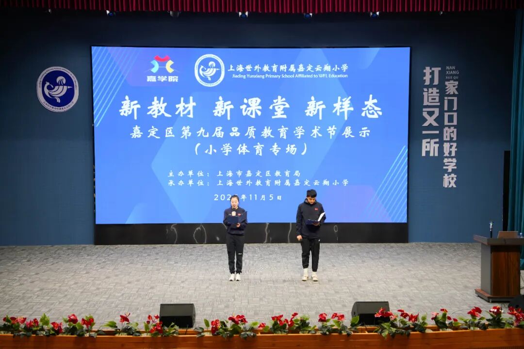 为有效落实“双新”,推进小学体育新教材有效实施,结合嘉定区第九届品质教育学术节相关主题要求,11月5日下午,小学体育活动专场在上海世外教育附属嘉定云翔小学成功举办。本次活动以“新教材 新课堂 新样态” 为主题,通过教学研讨、经验交流、技能展示、主旨报告、专家引领等环节,全方位呈现我区小学体育落实“双新”的实践成效。上海市教师教育学院上海市教委教研室小学体育教研员施利娟,嘉定区教育学院小学体育教研员李文峰,上海世外教育附属嘉定云翔小学校长朱萍、党支部书记王浩、执行校长沈丽芬,以及全区学科共同体教师、李文峰体育名师工作室成员、各校体育教研组长及一、二年级体育教师代表出席活动。本次活动由上海世外教育附属嘉定云翔小学的周健、陈佳雯两位老师共同主持。
