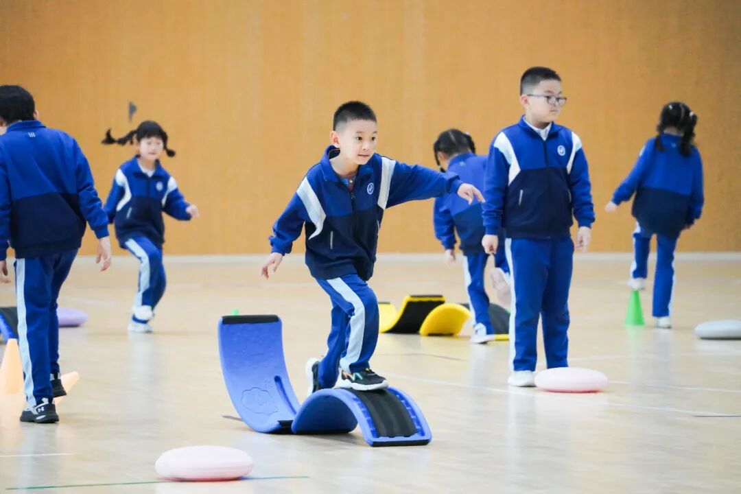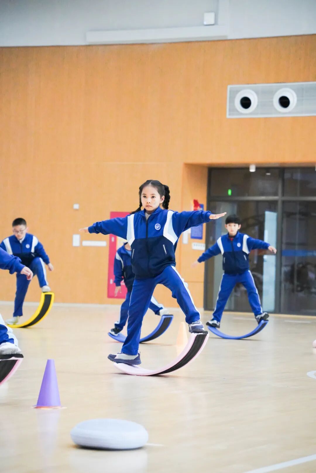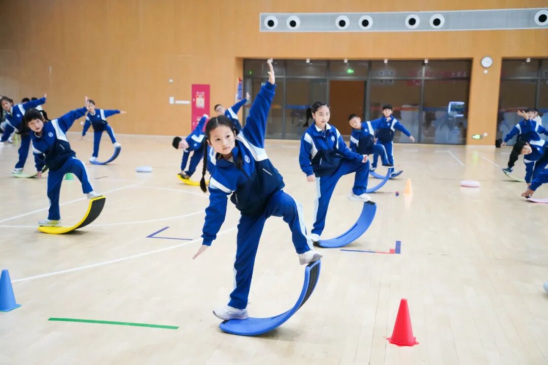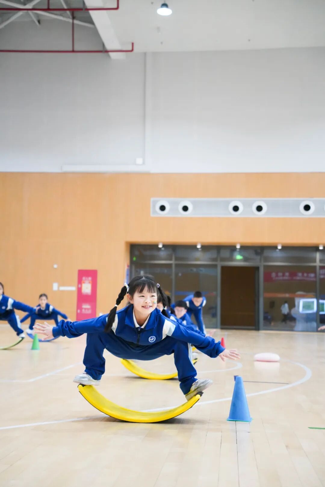 李梦雪老师执教一年级《非移动性技能:各种静态与动态平衡/4-3》。她以“鹏鸟起飞计划”为主线,设计“踏梦前行”“追梦启航”“寻梦飞跃”等递进式任务,引导学生在平衡板、平衡球等器材上体验不同姿态下的重心变化。课堂打破 “教师示范 - 学生模仿” 的传统模式,引导学生通过 “自主体验→发现问题→互助解决” 的路径探究技能。这种设计既强化了非移动性技能 “器材适配、协作中提升” 的特征,更培养了学生空间感知能力与问题解决能力,生动诠释 “以情境促学、以任务驱动” 的课堂新样态。