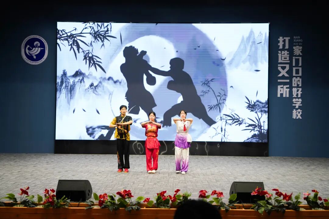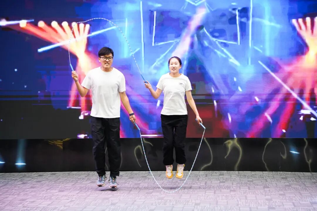 2025嘉定区小学体育教师技能赛亮点纷呈,尽显小学体育教师专业风采。代表教师进行了现场的部分比赛项目展示,花样跳绳,徐欢、宋文老师配合默契,绳影翻飞间腾跃穿梭,将协作技能展现得淋漓尽致;吴珍林、张雨静、靳家梅三位武术老师表演拳脚生风,招式刚柔并济,尽显中华武术精气神;在赵姜燕老师指导下,王超、裴君君、惠侯艳、刘倩、苏宣玉、周嘉瑶、汪宗洪七位老师的啦啦操激情四射,她们舞步活力、动作整齐,力量与美感并存。各环节展演既展现了小学体育教师的专业技能功底,也体现了体育教学内容的多元性与趣味性,赢得现场阵阵掌声。