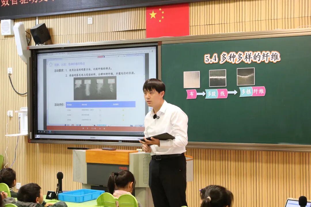 安师附小科学学科教师蔡王毅执教二年级《多种多样的纤维》一课并在课后进行教学反思。教师通过数智技术汇总课堂观察,促使评价可视;学生经历动手拆解、工具观察、平板记录等过程,科学素养得以培养。曾乐主持分会场活动。陈健肯定教师利用数智技术对课堂转型的尝试,课堂内容丰富、把控精准、评价多元、反馈及时、探究充分,学生初步形成科学思维、提高认识水平、建构概念意识,建议教师基于学情、借助AI开展更多样而有效的自主学习活动。