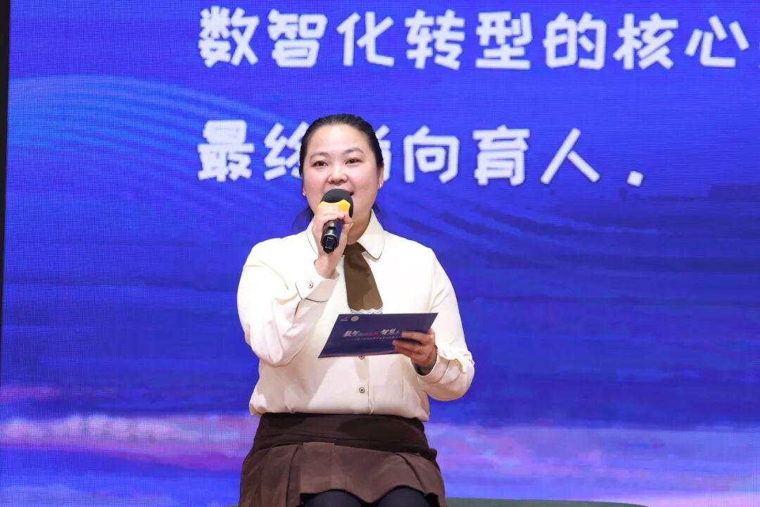 朱英作“数智协同 教学革新:以AI激活深度学习——安师附小推进教学数智化转型的实践与探索”主题报告。由全球教育趋势聚焦课堂真实困境,从“五阶逻辑”转向“人机共育”蓝图,在回应“变在哪里”“我们如何变”“变向何处去”中勾勒出清晰的数智化转型导航图,索引技术与教学的协同之路,促成以AI激活深度学习之愿。