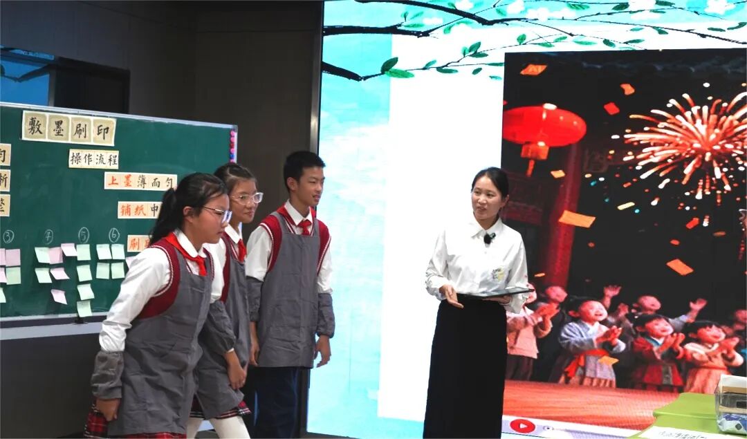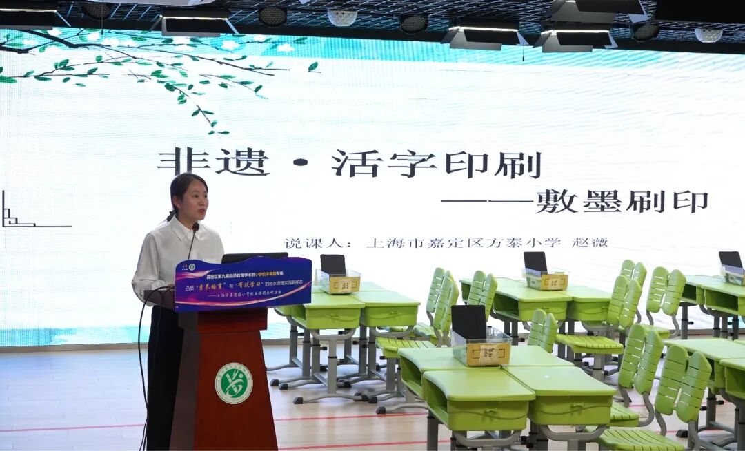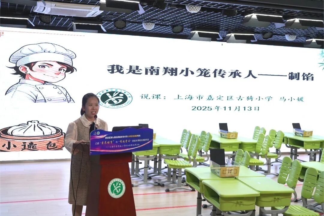 01 课例展示呈匠心,非遗传承融创新 课例展示环节,方泰小学赵薇老师与古猗小学马小媛老师分别就所执教的校本课程科目纲要及活动设计进行了系统阐述。两位青年教师的教学设计既体现了对传统文化的深度理解,又展现了现代教育理念的创新应用。 赵薇老师执教的《敷墨刷印》一课,以“小石头数字人”视频与教师解析双轨并进,通过精准的教学设计引导学生逐步掌握上墨、刷印的核心技巧。课堂上,学生们在“初试—互评—二次刷印”的递进式实践过程中,不仅提升了动手操作能力,更通过“旋转木马”思维工具开展作品互评,培养了批判性思维和审美素养。值得一提的是“金石工匠”评选机制的引入,使学生在追求技艺精进的过程中,自然而然地深化了对非遗文化的理解与工匠精神的认同。 马小媛老师带来的《我是南翔小笼传承人——制馅》一课,展现了传统技艺与现代科技的融合。课程巧妙地将社会调查与AI智能分析相结合,引导学生从现代饮食需求与科学营养观出发,重新审视并优化传统配方。在教学过程中,学生沿着“初次设计—发现问题—AI优化”的主线,不仅掌握了传统制馅技艺,更学会了运用现代科技工具解决实际问题的方法。这种教学设计使学生在中国传统美食文化的传承中,实现了创新思维与实践能力的双重提升。