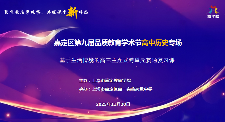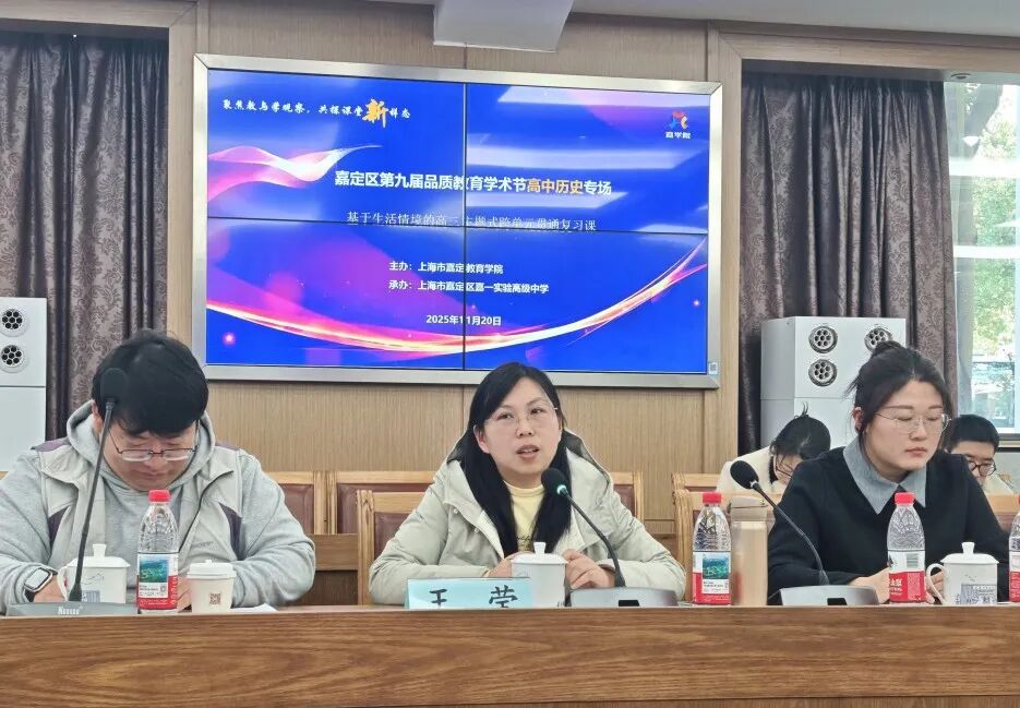 2025年11月20日下午,由上海市嘉定教育学院主办,上海市嘉定区嘉一实验高级中学承办的嘉定区第九届品质教育学术节高中历史专场活动顺利举行。活动围绕“基于生活情境的高三主题式跨单元贯通复习课”这一主题,开展深度研讨与思维碰撞,共同探索教学实践新样态,为提升高中历史教学品质、落实核心素养育人目标凝聚智慧与力量。 本次活动由嘉定区教育学院高中历史教研员王莹老师主持,汇聚了全区各校高一、高三年级历史教师,以及王莹、赵界高中历史“种子计划”工作室和沈淑雅高中历史名师工作室的成员共同参与了本次研讨。 课堂观摩: 主题引领下的情境化贯通课堂实践 嘉定一中张慧聪老师执教《辽夏金元的统治》,抓住“因俗而治”的制度特点与“大中国”格局形成的教学重难点设计教学。在“小中国”到“大中国”的主题引领下,课堂通过史料对比、400毫米等降水量线地图,深挖各政权“因俗而治”制度的适配性;随后聚焦元朝,用丰富图文史料,突出其在制度、疆域、认同上的突破,最后通过“四等人制”辩论培养学生辩证思维,落实核心素养。 嘉一实验高中李荣倩老师执教《文化交流和文明形塑——以蒙元时期为例》,立足于高三贯通复习课,在跨单元重组的基础上自拟教学主题。以意大利歌剧《图兰朵》导入并借助对剧中人物的分析串联本课。课堂聚焦在歌剧故事的背景13世纪的蒙元时期,通过剖析战争、人口迁徙和商贸活动这三种文化交流形式,建构起“交流方式-文化交流-文明形塑”的思维路径,旨在消弭选必单元内部、选必与纲要之间的界限,实现跨单元的系统性贯通。 深度研讨: 凝聚集体智慧共享共研 在互动研讨环节,与会教师结合课例展开了热烈研讨。教师们高度评价了两节课在精选史料、整合主题、渗透思维方法及构建系统知识体系方面的有效贯通,认为其精准回应了当下教学改革的新要求。同时,也从深化细节教学、增进师生深度互动等方面提出了具有建设性的优化意见。 引领提升: 把握趋势明确教学新方向 活动最后,嘉定区高中历史教研员王莹老师开展了微讲座《等级考命题趋势与教学启示》。王老师借助对等考试题的详细分析,解读了命题新态势,明确了高考改革方向,并由此阐释了主题式跨单元贯通教学的研讨价值。由此,她强调在日常教学中教师需立足课标内容要求的边界,构建精准且结构化的知识体系。同时聚焦核心素养,精选史料素材、科学设置问题链,分步骤、分层次训练学生综合解读多则材料、灵活运用史实、规范书面叙述的能力,以靶向发力提升教学实效。 本次教研活动以课例为实践蓝本,以深度研讨为载体,聚焦于“以主题为引领,实现课程内容情境化”这一重要路径,增进了教师对其育人价值与实践方式的理解。相信在全体历史教师的协同耕耘与持续探索下,我们的课堂将进一步凸显历史脉络的贯通性与思辨张力,在落实核心素养的道路上笃行不辍,为推动区域历史教育的高质量发展注入持久动力。