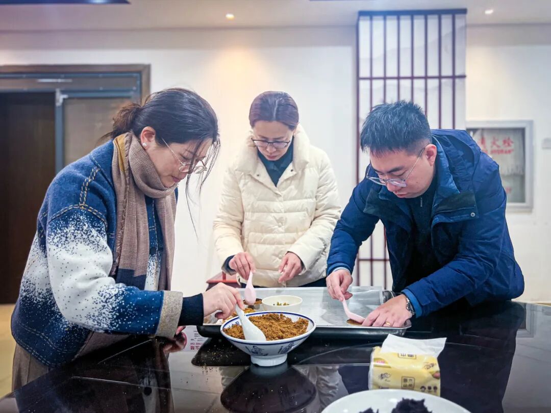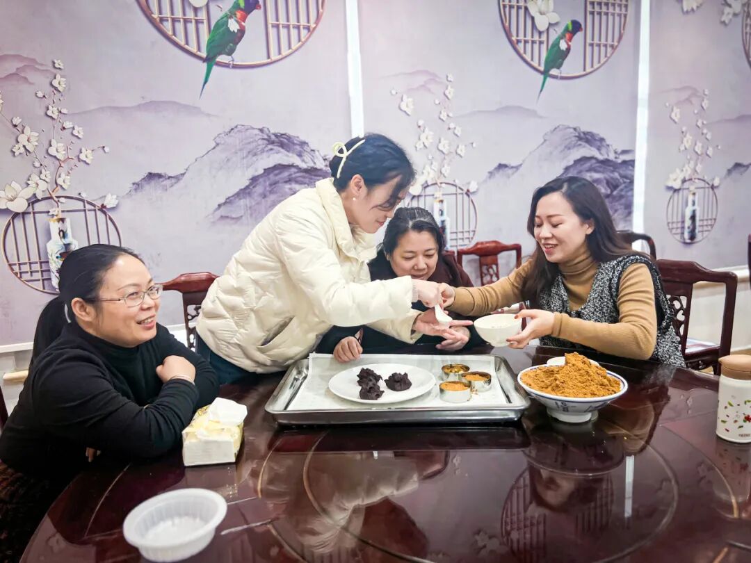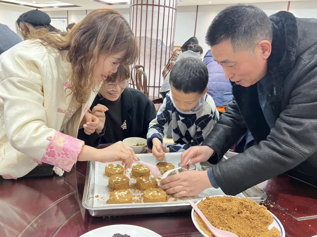 在制作过程中,教职工们不仅学到了传统点心制作技艺,还在互动交流中增进了彼此间的了解与友谊,进一步增强了团队的凝聚力和向心力。大家一边分享着制作点心的心得,一边回忆着儿时与家人一起做点心、迎新年的温馨场景,浓浓的家乡味道和节日氛围在活动现场弥漫开来。这种对地方文化的传承与弘扬,让每一位参与者都深感自豪与喜悦。