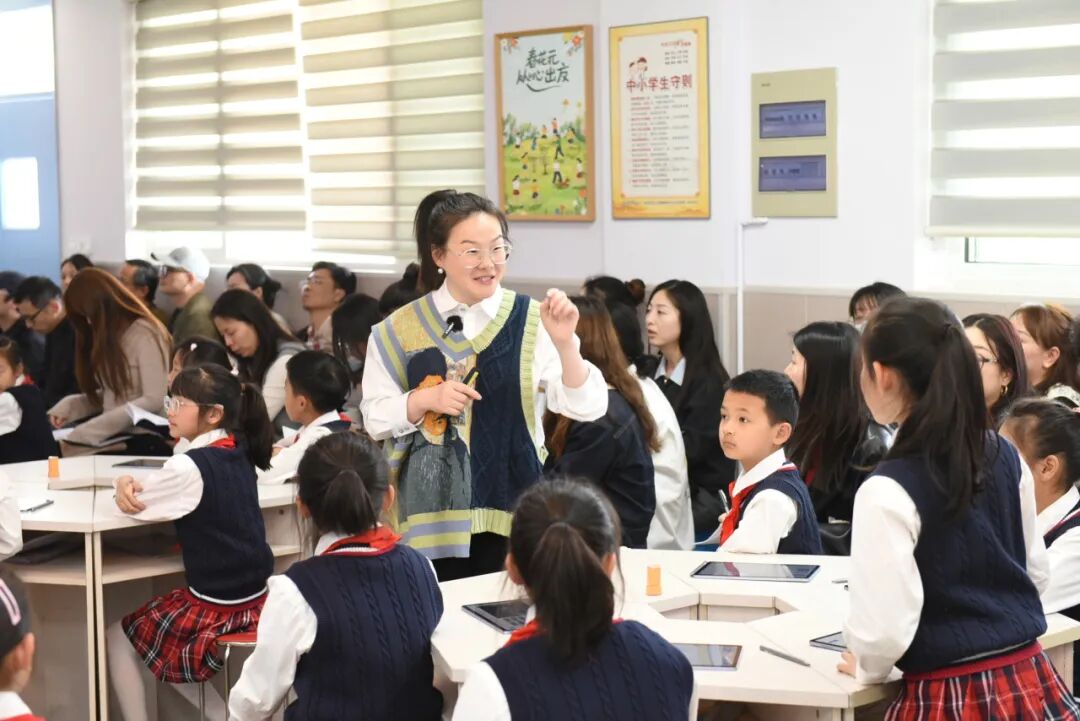 4月15日下午,主题为“‘数智’潮涌 精准赋能”的教学数字化转型展示交流活动在上海市嘉定区华江小学举行。本次活动由上海市嘉定区教育局和上海市嘉定区教育学院主办,华江小学承办。上海市教师教育学院(上海市教育委员会教学研究室)小学数学教研员、上海市特级教师章敏、小学美术教研员徐敏、嘉定区江桥镇教委主任徐刚、嘉定区教育学院小学数学教研员汤丽红、小学美术教研员戴春莉、嘉定区华江小学校长朱晓露、上海市特级教师、正高级教师朱燕青、嘉定区数字化转型项目校负责人及试验教师代表、汤丽红小学数学名师工作室成员、朱燕青小学数学名师工作室成员、各校一年级备课组长、美术教研组长,以及江桥学区小学数学学科基地成员共同参与活动。活动由华江小学副校长王昕宇主持。