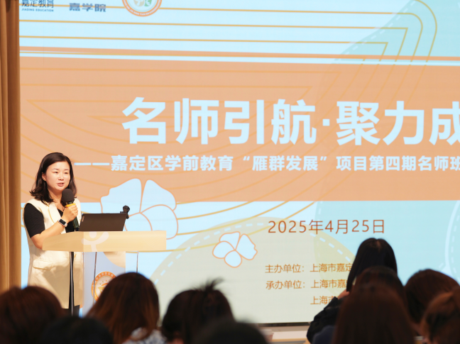 4月25日上午,嘉定区学前教育“雁群发展”项目第四期名师班结业展示活动在天恩幼儿园开展,嘉定区教育局学前科科长李珊珊、上海市特级教师、正高级教师、杨浦区新跃幼稚园园长、名师班导师何洁、区教育学院幼教部主任陆静及全体教研员、第四期名师班全体成员、第五期“雁群发展”项目导师,嘉定区公办园业务副园长及教师代表等170余人共同参与活动。