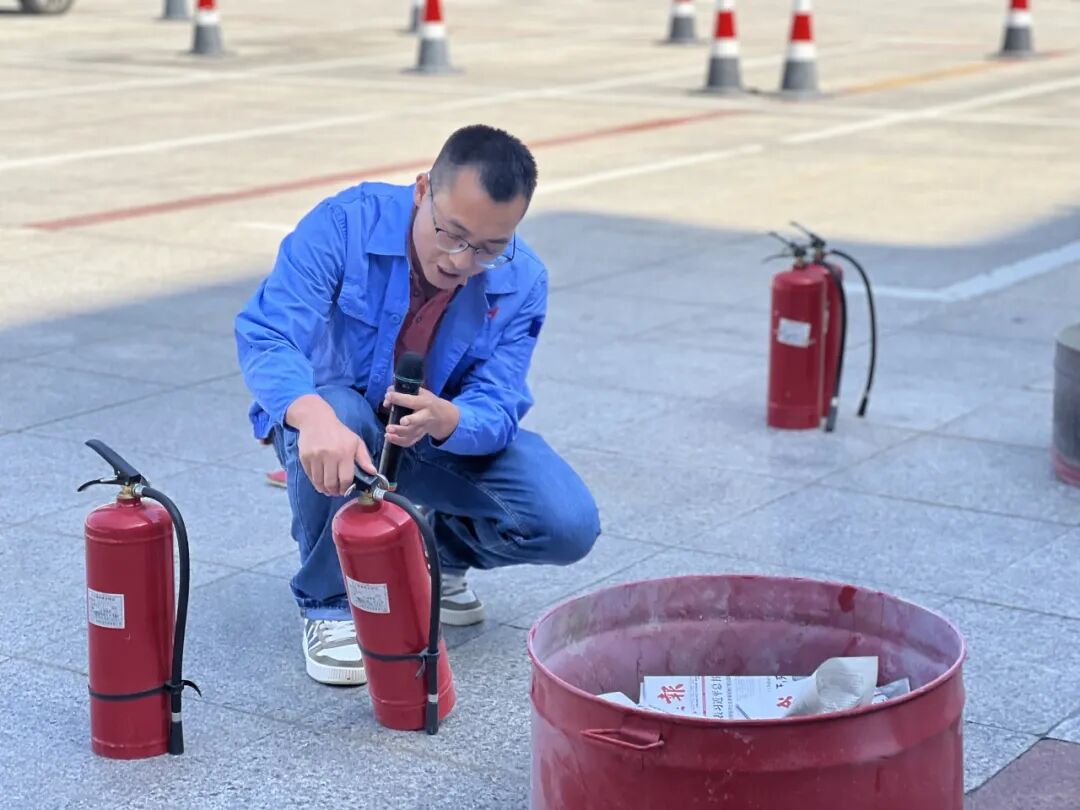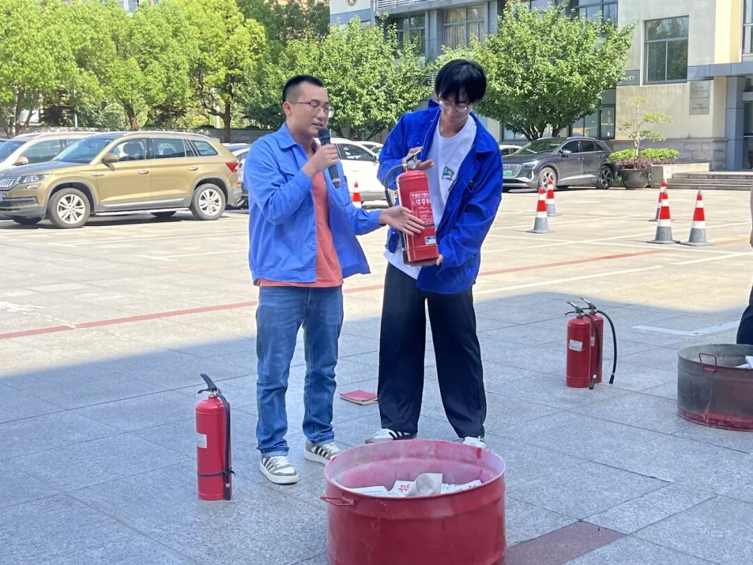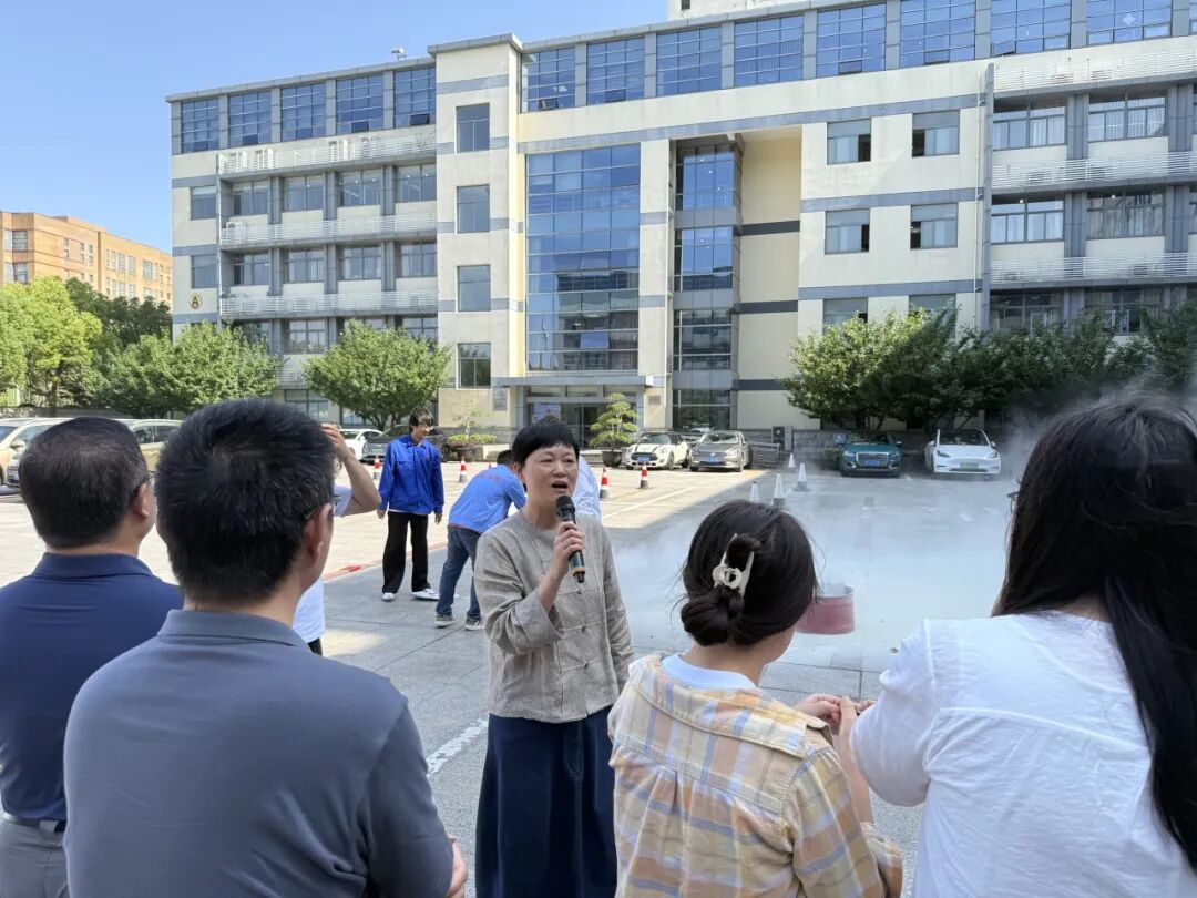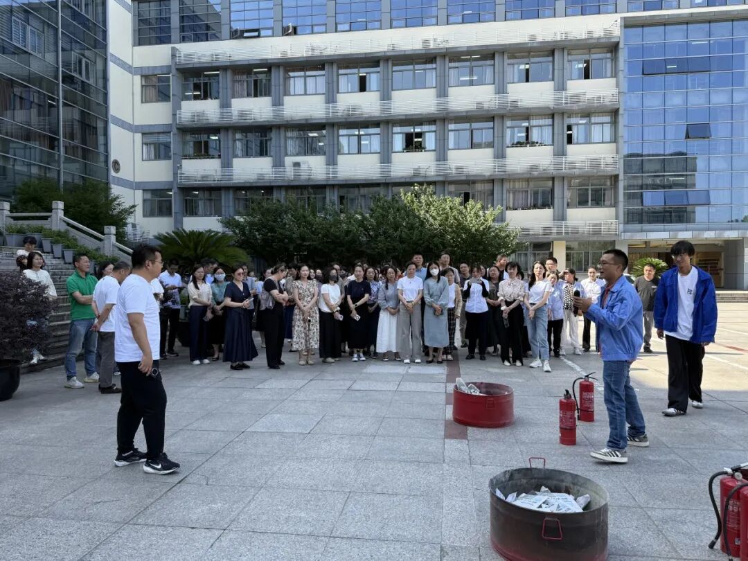 点评结束后,演练进入实战环节。消防员现场详细讲解并示范了干粉灭火器“提、拔、握、压”四步操作法。学院食堂、物业、保安、图书馆等重点要害部门人员率先上场实操。面对模拟火源,食堂师傅迅速判断风向,精准喷射,火焰应声而灭;物业人员在消防员的指导下,从初时的紧张到顺利完成扑救。大家轮番上阵,在“真枪实弹”的操作中掌握了灭火器的正确使用技巧。 活动尾声,学院副院长丁馨对本次演练进行了总结。她强调:“安全无小事,责任重于山。本次演练检验了预案,锻炼了队伍。全院上下要以‘安全生产月’为契机,将应急演练常态化,确保人人掌握必备逃生技能和初期火灾处置能力,时刻保持警惕,为全体教师筑起一道坚实可靠的安全屏障,全力建设平安学院。” 本次演练以“演”促防,以“练”备战,不仅强化了教职工的消防安全意识和自救互救能力,更检验了学院应急体系的响应速度与协调水平,为营造安全、稳定、和谐的学院环境奠定了坚实基础。安全之弦,常紧不松;生命防线,你我共筑。