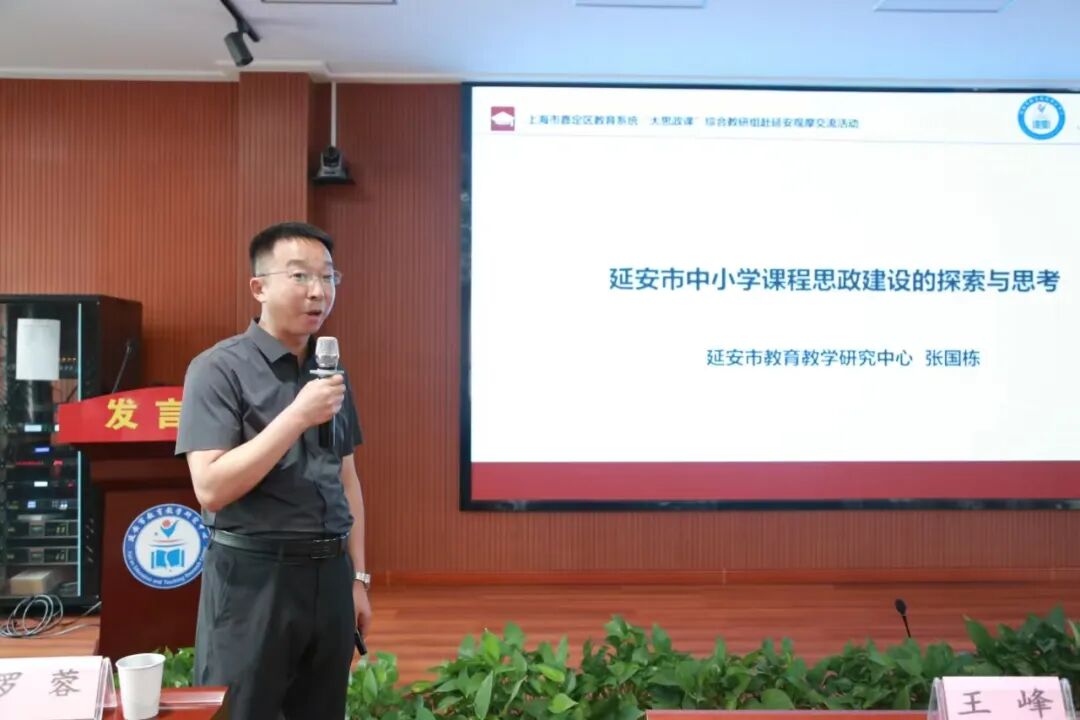 第一站:延安市教育教学研究中心 在延安市教育教学研究中心,王峰副主任带领的团队向我们介绍了延安市围绕着“延安精神”开展的一系列中小学课程思政建设工作。 教师发展科科长张琰分享了延安市在新时代依托延安精神开展教书育人的丰富实践探索。他详细介绍了区域如何通过精心营造教书育人外部环境、开展以延安精神为引领的教书育人课题研究、打造精良的师资队伍、整合延安精神与各学科教学等方式,全方位推动延安精神在新时代的教育教学中落地生根、开花结果。 中学教学研究科科长张国栋,向我们介绍了其团队荣获陕西省第十三届基础教育教学成果特等奖的项目——“立德树人格局下基础教育课程思政的实践研究”。这一成果以立德树人为根本导向,聚焦基础教育课程思政建设,通过深入研究与实践,构建起一套科学、有效的课程思政实施体系。 嘉定区思想政治教研员印伟结合高中思想政治教研实践,介绍了我区开展“思政一体化”建设的举措和实践;德研员解艳分享了我区以区域特色德育品牌课程——“学生幸福课程”为载体,推进区域中小幼“思政一体化”育人的具体做法、实践思考与未来展望。