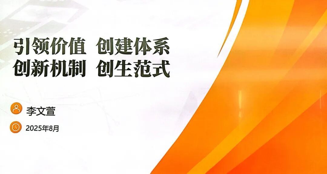 为进一步明晰教研机构职能定位,破解区域基础教育高质量发展难题,提升中层管理团队专业引领与服务效能,2025年8月29日上午,嘉定区教育学院召开全体行政培训会议,特邀原徐汇区教育局副局长、徐汇区教育学院原院长李文萱作题为“引领价值 创造体系 创新机制 创生范式”的专题报告。学院全体中层及以上管理干部参会,共同聚焦教研核心使命,探索新时代教研工作的实践路径。