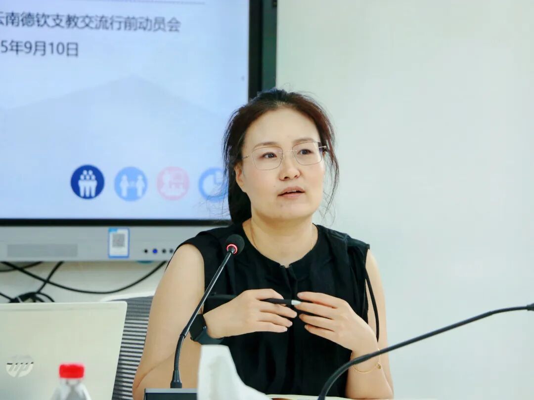 为积极落实国家关于推动教育均衡发展与乡村振兴的战略部署,深化校地合作,我院精心选派了一批优秀教师,即将奔赴云南省迪庆州德钦县开展支教交流工作。为确保此项工作安全、有序、高效进行,9月10日上午学院举行了行前动员会。学院党总支书记、院长许晓芳、副院长汤杰、人力资源部副主任贡美杰,本次全体支教成员及相关部门人员出席了会议。 会上,许晓芳院长发表了热情洋溢而又语重心长的动员讲话。她高度肯定了老师们投身教育帮扶事业的奉献精神。她指出,支教交流既是一项光荣的政治任务,也是一次宝贵的人生历练。她对支教教师提出了几点殷切期望:一要不忘初心、牢记使命,以高度的责任感和饱满的热情投入工作,真正为当地教育发展贡献力量;二要虚心学习、积极融入,尊重当地文化习俗,深入了解学情,将先进的教育理念与当地实际相结合;三要团结协作、互帮互助,形成一个有凝聚力、战斗力的集体;四要保重身体、注意安全,确保平安顺利完成支教任务。她表示,学院将是全体支教老师的坚强后盾,全力为大家提供支持与保障。 动员会由分管对口交流工作的汤杰副院长主持。他首先代表学院向主动请缨、肩负重任的各位支教老师表示了崇高的敬意和衷心的感谢。他强调了此次支教工作对于支持西部教育、促进民族团结、服务社会的重要意义,希望老师们能提高认识、不辱使命,充分展现我院教师的专业素养与精神风貌。 本次动员会特别设置了经验分享环节。特地邀请了两赴德钦参与支教工作的赵明珠老师分享了其亲身经历与宝贵心得。赵老师从当地生活环境、教学特点、学生情况、文化交流注意事项以及如何有效开展工作的具体方法等方面,进行了细致入微、生动实用的介绍,为本轮支教老师们提供了极具价值的参考,帮助他们更好地进行心理调适和行前准备。 此次动员会的成功召开,使即将奔赴山海的研训员老师们进一步统一了思想、明确了任务、增强了信心。大家纷纷表示,必将牢记嘱托,珍惜机会,克服困难,以最昂扬的斗志和最扎实的工作,圆满完成本次支教交流任务,为促进德钦县教育事业的发展贡献自己的智慧和力量,载誉而归。