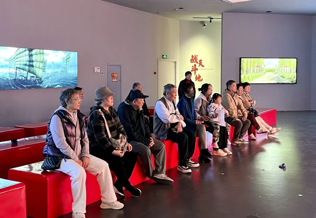 用过中餐后,老教师们乘车来到长兴岛郊野公园,开启了兼具历史探寻与田园体验的旅程。首先参观的长兴岛博物馆,博物馆以海岛发展历史为主线,通过珍贵的历史影像、生动的实景再现和沉浸式3D影片,全方位展现了长兴岛的百年变迁。馆内,“日抬黄泥八百担,夜拦海潮千万倾”的围垦历史影像让人动容,先民们与江海争地、向荒滩要粮的奋斗场景仿佛就在眼前;19世纪长兴岛的历史风貌实景展区,让老教师们直观感受了海岛的岁月变迁;3D影院中,长兴岛由诸多沙洲串连而成的地质演化过程,更让大家惊叹于自然与人力的奇妙结合。作为曾经深耕教育事业的开拓者,老教师们对博物馆所传递的奋斗精神深有共鸣,教育之路亦如拓荒之旅,唯有不断的坚守与付出,方能在求知的荒原上开辟出通途。
